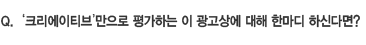 베스트라는 수식어는 언제 들어도 기분 좋은 말이지만 그 뒤에 크리에이티브까지 붙으니 감개가 무량합니다.