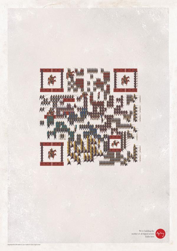 광고대행사 오길비의 구인광고 포스터입니다. 멀리서 보면 QR 코드로 보이지만,자세히 살펴보면 군사의 모습이라는 것을 알 수 있습니다^^ 자신들이 만들고 있는 '디지털 군사'에 당신이 들어오길 바란다라는 메시지를 담고 있네요. 역시 오길비!