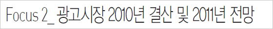 주요 매체별로 2010년의 광고시장의 특징을 살펴보고 2011년에는 어떤 일들이 일어날지 간략히 전망을 해보도록 하자.