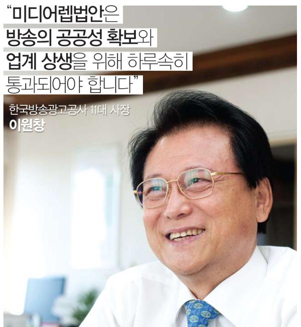 현재 국회에서 논의되고 있는 미디어렙법안의 조속한 통과를 위한 노력부터 공사의 고유 업무인 방송광고영업 매출 향상, 광고진흥사업의 품질제고, 공기업인 코바코만이 할 수 있는 공적 인프라 구축, 나아가 급변하는 광고계의 외연을 확대하기 위한 노력까지. 이원창 사장이 갖고 있는 로드맵을 따라가며 공사가 앞으로 펼쳐 갈 사업과 나아갈 방향, 계획 등을 들어보았다.