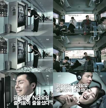 기대하지 않았던 뜻밖의 행운이 우루루 쏟아지는 날. KTF Na 대학생들의 즐거운 금요일을 재밌게 표현한 CF 방영